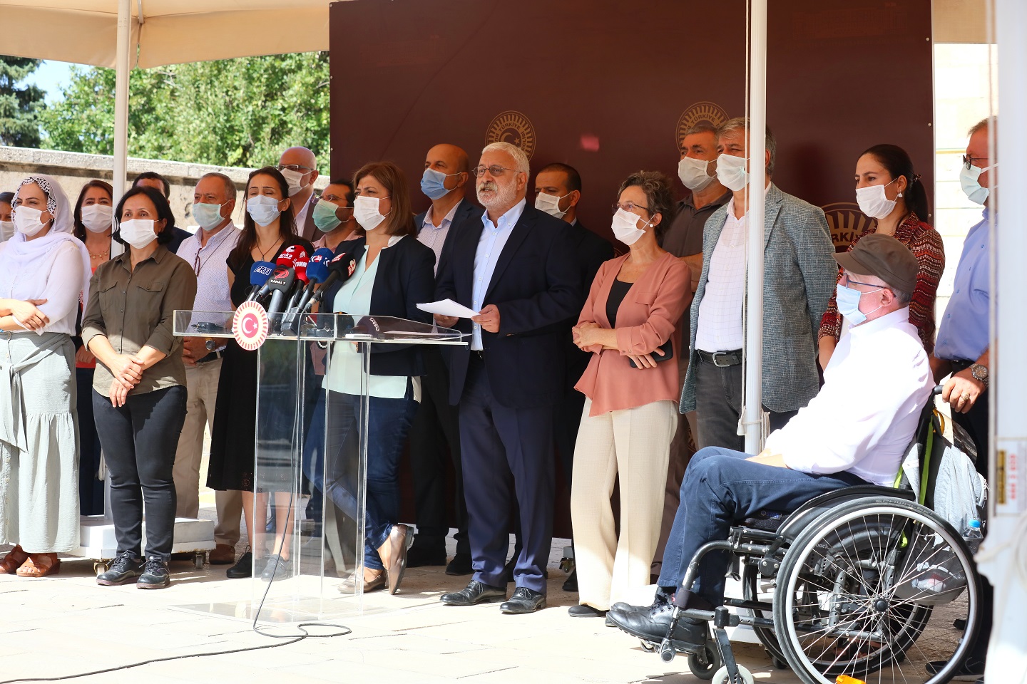 HDP Grup Başkanvekilleri Meral Danış Beştaş ve Saruhan Oluç, milletvekilleri ile birlikte 6 yıl önce gerçekleşen Kobanê olayları gerekçe gösterilerek yapılan gözaltı operasyonuna tepki göstermek için TBMM’de basın toplantısı düzenledi. Basın açıklamasında sonra HDP milletvekilleri TBMM bahçesinde alkışlarla yürüyüş yaparak partilerine yönelik gerçekleştirilen gözaltı operasyonunu protesto ettiler. Basın açıklamasında şu [Devamını Oku…]