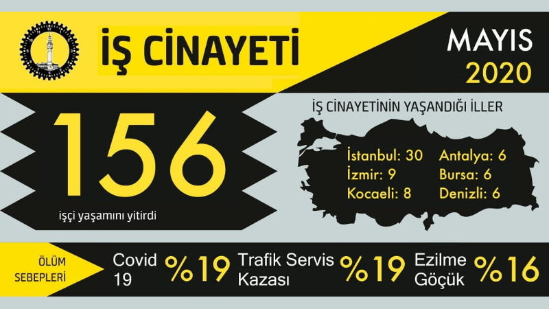 2020’nin ilk 5 ayında hayatını kaybeden işçi sayısı 737, koronavirüs nedeniyle 3 ayda ölen işçi sayısı 146