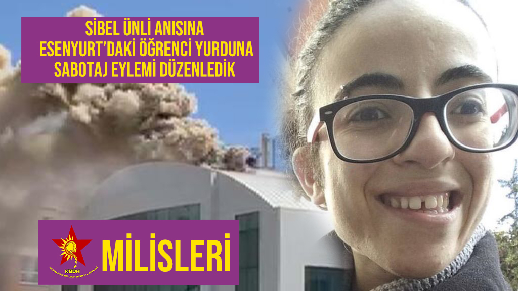 Kadınların Birleşik Devrim Hareketi (KBDH) 2 Mayıs günü öğlen saatlerinde İstanbul’da bulunan Gençlik ve Spor Bakanlığı’na bağlı Esenyurt Kız Öğrenci Yurdu’na geçtiğimiz aylarda yoksulluk nedeniyle intihar eden Sibel Ünli anısına eylem düzenlendiğini açıkladı. Şuan kullanılmayan ve boş bulunan yurt binasının KBDH milisleri tarafından düzenlenen sabotaj eyleminden sonra kullanılamaz hale geldiği [Devamını Oku…]