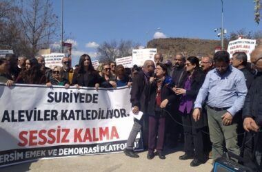 Suriye’de Alevilere dönük katliamlar Dersim Emek ve Demokrasi Platformu tarafından protesto edildi. Sanat Sokağı’nda bir araya gelen kitle Seyit Rıza Meydanı’na kadar yürüyüş gerçekleştirdi. Buradaki yapılan basın açıklamasını Demokratik Alevi Dernekleri (DAD) yöneticisi Emirali Genç okudu. Suriye’de katliamların boyutunun giderek arttığını belirten Emirali Genç, “Bu karanlığın en açık tezahürü, Suriye’de [Devamını Oku…]