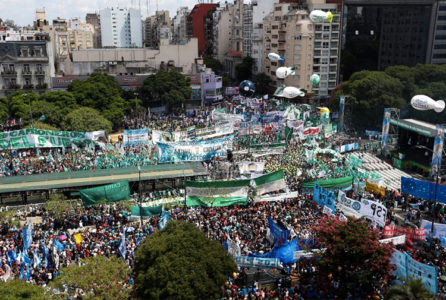 Arjantin’de işçi sendikaları, sosyal hareketler ve insan hakları grupları Buenos Aires sokaklarında Devlet Başkanı Mauricio Macri’nin ekonomi politikalarını, işten çıkarmaları, yeni getirilen emekliliğe ilişkin düzenlemeleri, sosyal liderlere yönelik yargısal kovuşturmayı ve işçilere yönelik diğer düzenlemeleri protesto etti. Eyleme katılan sendikalar arasında Genel İşçi Konfederasyonu (3 milyon üye), Arjantin Merkez İşçi [Devamını Oku…]