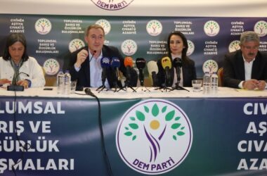 DEM Parti Eş Genel Başkanı Tuncer Bakırhan, “Sayın Öcalan devletin ezberini bozacak bir çağrı yapacak” dedi. Halkların Eşitlik ve Demokrasi Partisi (DEM Parti) Eş Genel Başkanları Tülay Hatimoğulları ile Tuncer Bakırhan, “Toplumsal barış ve özgürlük buluşmaları” kapsamında İstanbul’un Beyoğlu ilçesinde din alimleriyle bir araya geldi. Taksim Hill Hotel’de düzenlenen buluşma [Devamını Oku…]