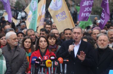 Halkların Eşitlik ve Demokrasi Partisi (DEM Parti) Eş Genel Başkanları Tülay Hatimoğulları ve Tuncer Bakırhan, partinin tüm belediye eş başkanları, belediye meclis üyeleri ve görevden alınan eş başkanlarla birlikte, kayyım kararlarını protesto etmek için Ankara’daki Güven Park’ta bir araya gelerek açıklama yaptı. Açıklama öncesi partililer, park içinde yürüyüş düzenledi. Yürüyüş [Devamını Oku…]