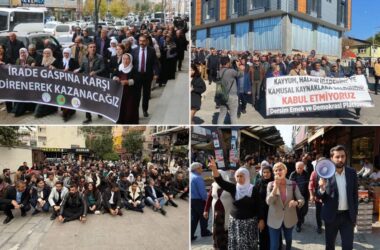 Halkların Eşitlik ve Demokrasi Partisi yönetimindeki Mardin, Batman ve Halfeti belediyelerine kayyım atanması, birçok kentte gerçekleşen yürüyüşler ve basın açıklamalarıyla protesto edildi. Kayyım atanan Batman’da DEM Parti Eş Genel Başkanları Tülay Hatimoğlları ve Tuncer Bakırhan’ın da katılımıyla açıklamalar gerçekleştirilirken belediye binası polis ablukasına alındı. Mardin ve Halfeti de de belediye [Devamını Oku…]