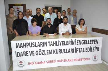 İnsan Hakları Derneği Adana Şubesi ile İskenderun Şubesi, düzenledikleri basın toplantısında, hapishanelerde tutsakların tahliyelerini engelleyen “İdare ve Gözlem Kurulları”nın iptal edilmesini talep etti. 5275 sayılı Ceza ve Güvenlik Tedbirlerinin İnfazı Hakkında Kanun’un 89. maddesinde yapılan değişiklikle, 2021 başında uygulanmaya başlanan yönetmelik çerçevesinde oluşturulan İdare ve Gözlem Kurulları, tutsakların iyi halli [Devamını Oku…]