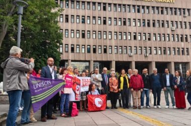 SES yöneticilerinin yargılandığı davada, tutuklu Genel Kadın Sekreteri Selma Atabey hakkında tahliye kararı verildi. Kamu Emekçileri Sendikaları Konfederasyonu’na (KESK) bağlı Sağlık ve Sosyal Hizmet Emekçileri Sendikası (SES) Genel Kadın Sekreteri Selma Atabey ve önceki dönem Eş Genel Başkanı Gönül Erden’in de aralarında bulunduğu 8 sendika yöneticisi hakkında “Örgüt üyesi olmak”, [Devamını Oku…]