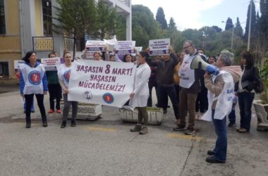 8 Mart Dünya Kadınlar Günü’nde kadınlar iş yerlerinde, hastanelerde, adliyelerde açıklamalar yaptı. 8 Mart Dünya Emekçil Kadınlar Günü’nde kadınlar kent meydanlarındaki eylemlerin yanı sıra iş yerlerinde de açıklamalar yapıyor. İşçi kadınlar fabrikalarda, sağlıkçılar hastane önlerinde, avukat kadınlar adliye binalarında açıklamalar yaptı; taleplerini dile getirip birlikte mücadeye çağırdı. Öte yandan TTB [Devamını Oku…]