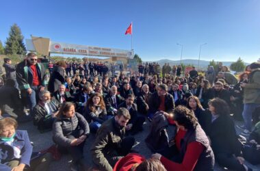 Deniz Poyraz Davası’nda bugün görülen duruşmada mahkemenin keyfi bir şekilde avukatları salona almaması sonrası oturma eylemi başlatan kitle İzmir’e doğru yürüyüşe başladı.