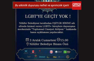 Bursa Nilüfer Belediyesi Kent Konseyi tarafından yürütülen “Toplumsal Cinsiyet Eşitliği Atolyesi” çalışması iktidar tarafından hedef gösterildi, soruşturma başlatıldı. Dün gece saat 24:00 sularında kimliği belirsiz kişi yada kişilerce Görükle’de bulunan Gençlik Meclisi Evi saldırıya uğradı. Kent Konseyi’nin yaptığı “Nilüfer Kent Konseyi Gençlik Meclisimizin 3-4 Aralık tarihlerinde gerçekleştirmeyi planladığı Toplumsal Cinsiyet [Devamını Oku…]