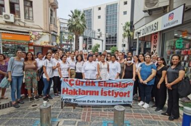 Kadınlar Birlikte Güçlü, direnişteki İzmir Büyükşehir Belediyesi Evde Sağlık ve Bakım işçilerine destek ziyaretinde bulundu.