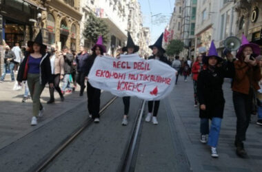 İstanbul İstiklal Caddesi’nde Regl ürünlerine gelen zamlara karşı eylem yaptıkları için gözaltına alınan 6 kadın serbest bırakıldı. Regl ürünlerinin ücretsiz ve ulaşılabilir olması talebiyle İstanbul Beyoğlu İstiklal Caddesi’nde yürüyüş yaptıkları gerekçesiyle dün Kampüs Cadıları üyesi 6 kadın gözaltına alındı. Yürüyüş yaptıkları için gözaltına alınan 6 kadın, serbest bırakıldı. (MA)
