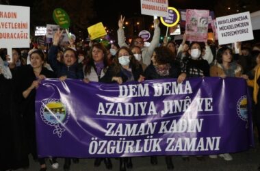 Kadınlar Birlikte Güçlü, Diyarbakır’da kadın mücadelesi veren 24 kadının gözaltına alınmasına karşı, “Özgürlük ve şiddetsiz bir yaşam için mücadele eden Kürt kadın kurumlarını özel bir savaş politikasıyla hedef almayı sürdürüyor, arkadaşlarımız derhal serbest bırakılsın” ifadeleri ile, İstanbul ve İzmir’de eylem gerçekleştirerek tepkilerini gösterdi. İstanbul Kadınlar Birlikte Güçlü, “Kadın mücadelesi yargılanamaz” [Devamını Oku…]
