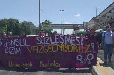 Üniversiteli Kadınlar, “İstanbul Sözleşmesi bizim vazgeçmiyoruz” şiarıyla, Altunizade metrobüs istasyonunu çift yönlü trafiğe kapattı. Kadınlar, “Her gün kadınlar katlediliyor, hayatı durduruyoruz” dedi. İstanbul Sözleşmesi’nin AKP’li Cumhurbaşkanı Tayyip Erdoğan’ın kararıyla feshedilmesine karşı kadınlar sokakları kuşatmaya devam ediyor. Üniversiteli Kadınlar, “İstanbul Sözleşmesi bizim, vazgeçmiyoruz” yazılı pankartlarla, Altunizade metrobüs istasyonunu çift yönlü kapattı. [Devamını Oku…]