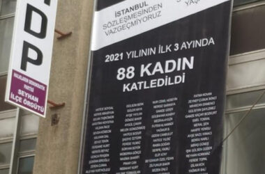 HDP’nin kadın katliamlarına dikkat çekmek için binasına astığı pankart, polisler tarafından kaldırıldı. Halkların Demokratik Partisi (HDP) Adana Kadın Meclisi, HDP Seyhan İlçe Örgütü binasına astığı İstanbul Sözleşmesi’ne ve kadın katliamlarına dikkat çeken pankart polisler tarafından kaldırıldı. Gerekçe olarak ise “yasak” olması gösterildi. Dün asılan pankartta 2021 yılının ilk 3 ayında [Devamını Oku…]