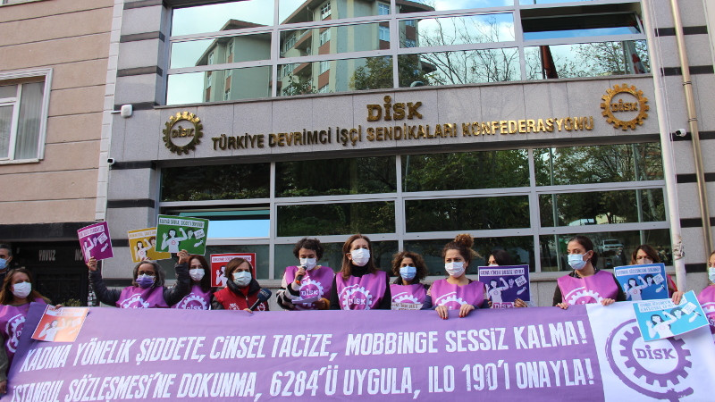 DİSK üyesi kadınlar, 25 Kasım Kadına Yönelik Şiddete Karşı Mücadele Günü dolayısıyla eylem yaptı. Beşiktaş’ta bulunan DİSK Genel Merkezi önünde yapılan eylemde, “Kadına yönelik şiddete, cinsel tacize, mobbinge sessiz kalma! İstanbul Sözleşmesi’ne dokunma, 6284’ü uygula, ILO 190’ı onayla!” yazılı pankart ve dövizler açıldı. Açıklama yapan DİSK Genel Başkanı Arzu Çerkezoğlu, 25 [Devamını Oku…]