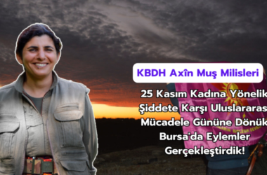 KBDH Axîn Muş Milisleri; “25 Kasım Kadına Yönelik Şiddete Karşı Uluslararası Mücadele Gününe Dönük Bursa’da Eylemler Gerçekleştirdik!” açıklaması yaptı. 21 Kasım gece 01:00 sularında Bursa’nın Osmangazi ilçesi, Geçit Mahallesi, 772. Sokak’ta bulunan bir mobilya üretim fabrikası ateşe verildi. Fabrika büyük oranda zarar görürken yüksek maddi zarar tespit edilmiştir. 23 Kasım [Devamını Oku…]