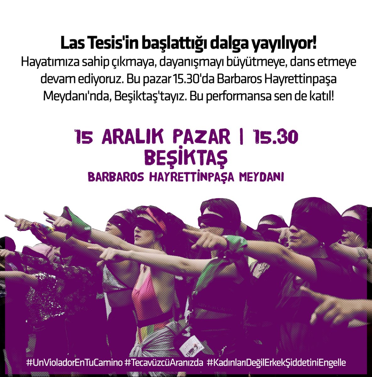 “Hayatımıza sahip çıkmaya, dayanışmayı büyütmeye, dans etmeye devam ediyoruz” diyen kadınlar Las Tesis’in başlattığı dans performansı ile Beşiktaş’ta buluşuyor. Kadınlar Birlikte Güçlü, Şili’de Las Tesis’in başlattığı ve birçok ülkeye yayılan Las Tesis dansını gerçekleştirmek üzere “Hayatımıza sahip çıkmaya, dayanışmayı büyütmeye, dans etmeye devam ediyoruz” diyerek yarın saat 15.30’da Beşiktaş Barbaros [Devamını Oku…]
