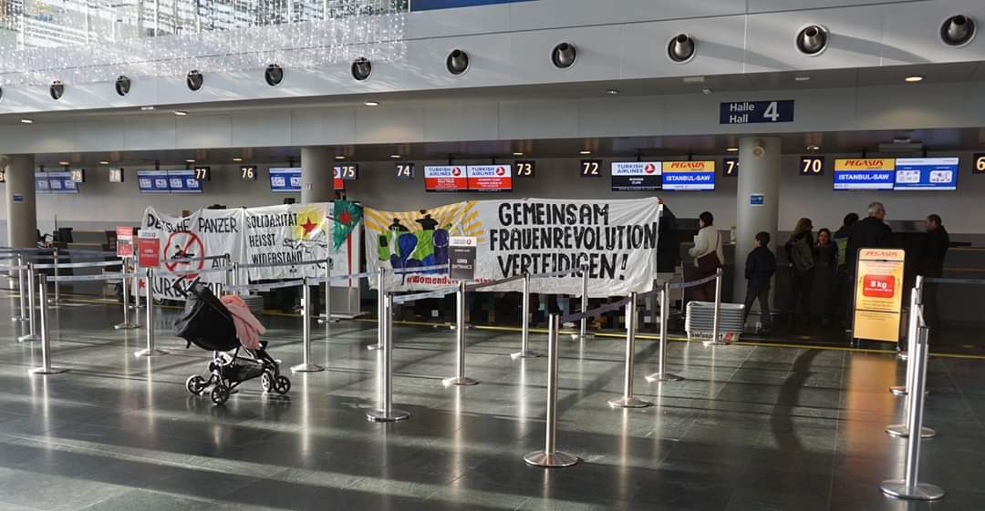 İsviçre’de Aynur Ada ve enternasyonalist savaşçılar için eylem yapıldı. Yapılan eylemde Türk Hava Yolları’na ait hava limanında bulunan gişeler kapatıldı. Kapatılan gişelere pankartlar asılarak işgal eylemi gerçekleştirildi. Ceren Güneş, Aynur Ada, Havrin Khalaf, Daye Aqide, Amara Renas için yapılan eylemde ayrıca Almanca bir açıklama yayınlandı. ‘5 Kasım günü yapılan işgal [Devamını Oku…]