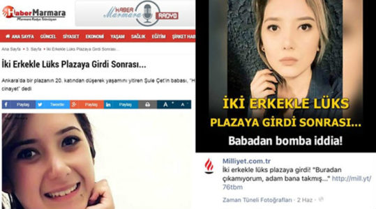 Ana akım medya, cinsel istismara uğrayarak öldürüldüğü ortaya çıkan Şule Çet’i suçladı. Ankara’da bir plazanın 20. katından atlayarak “intihar” ettiği iddia edilen ve otopsi raporlarıyla tecavüz edilerek öldürüldüğü ortaya çıkan Şule Çet hakkında yandaş medyanın kullandığı dil yine şaşırtmadı. KADIN CİNAYETİNDEN MAGAZİN HABERİ Yapılan haberde Şule Çet’in fotoğrafları açıkça kullanıldığı [Devamını Oku…]