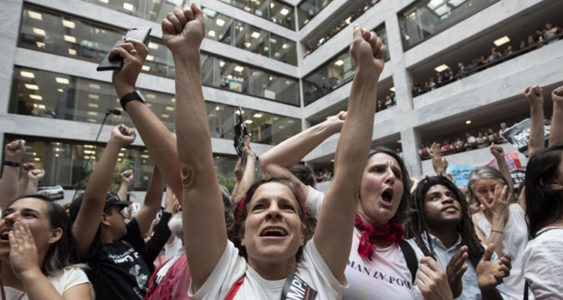 HABER MERKEZİ – ABD Başkanı Donald Trump’ın göçmen karşıtı ve çocukları sınırda ailelerinden ayıran politikaları kadınlar tarafından Senato binasının işgal edilmesiyle protesto edildi. Yüzlerce protestocu, kadın hakları örgütlerinin çağrısıyla beyaz giysiler giyinerek Senato binasının önünde bir araya geldi. Yere oturan kadınlar, yetkililerin sınırda ailelerinden ayrılan çocuklara verdiği metal renkli battaniyeleri [Devamını Oku…]
