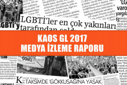 Kaos Gey ve Lezbiyen Kültürel Araştırmalar ve Dayanışma Derneği (Kaos GL), LGBTİ’lerin medyada yer alış biçimine ilişkin 2017 Medya İzleme Raporu’nu yayınladı. Kaos GL Medya ve İletişim Program Koordinatörü Yıldız Tar’ın hazırladığı raporun medya izleme ekibinde Ali Özbaş, Aslı Alpar ve Yıldız Tar yer aldı. Rapordan öne çıkanlar ise şöyle: [Devamını Oku…]
