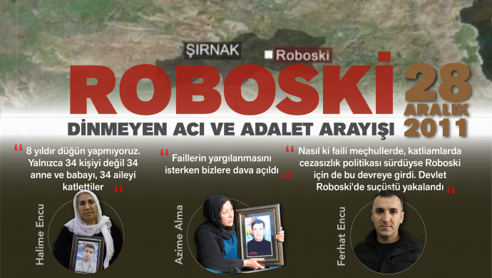 Ailelerin “adalet” taleplerinden vazgeçmediği Roboski Katliamı’nda 33 yakınını kaybeden Ferhat Encu, bu yılki anmaya üç yılı aşkın tutukluluğunun ardından katılacak. Dava dosyasının yeniden açılmasını amaçladıklarını söyleyen Encu, “Güçlü bir itirazda bulunursak Roboski bir başlangıç olabilir” dedi. Şırnak’ın Uludere ilçesine bağlı Roboski Köyü’nde, 28 Aralık 2011 günü 19’u çocuk 34 kişinin Türk [Devamını Oku…]