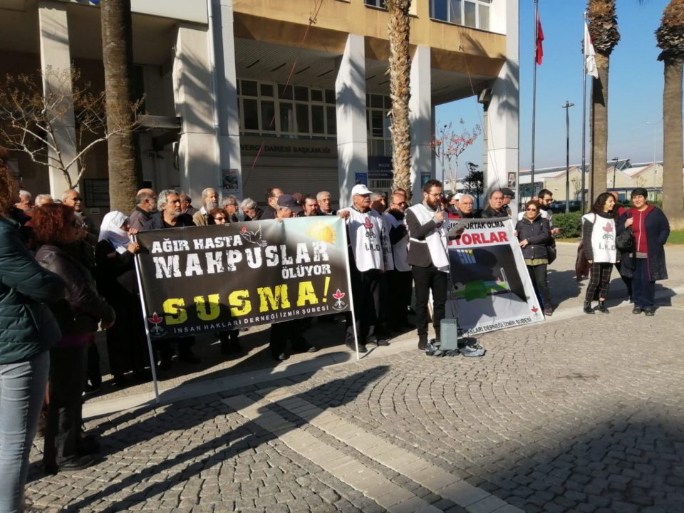 Akhisar T Tipi Cezaevi’nde bulunan ağır hasta tutuklu Hüseyin Sarı, heyet raporunun sevk sırasında kaybolması gerekçesiyle tahliye edilmiyor. İncin, Sarı ile ilgili infazın ertelenmesi talebiyle Adalet Bakanlığı’na başvuru yapıldığını ifade ederek, “Başvuruya rağmen Bolu F Tipi Hapishanesi’nde iken almış olduğu heyet raporunun sevk esnasında kaybolduğu söylenmiştir. Akhisar Cezaevi yönetiminin Sarı’ya [Devamını Oku…]
