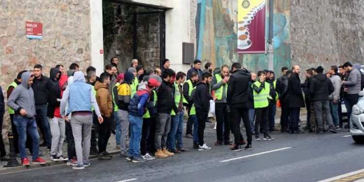 Metro hattı inşaatında çalışan işçilerden iş bırakma eylemi