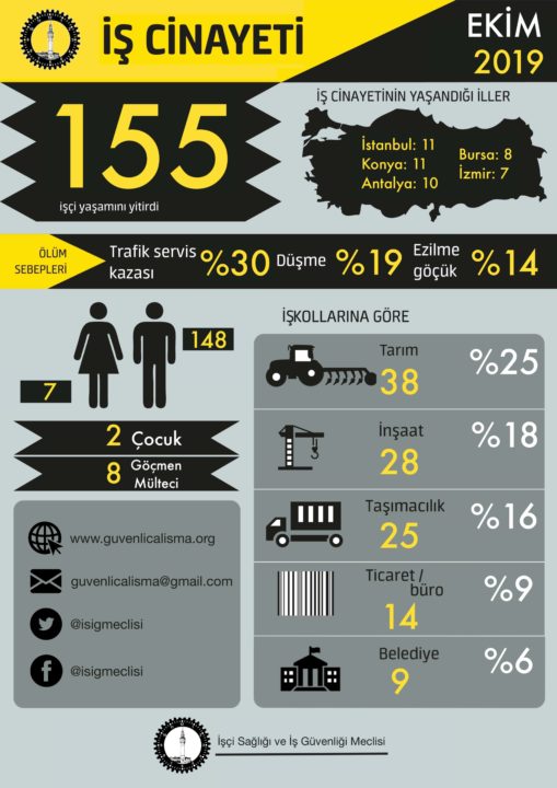 2019 yılının ilk on ayında 1477 işçi yaşamını yitirdi