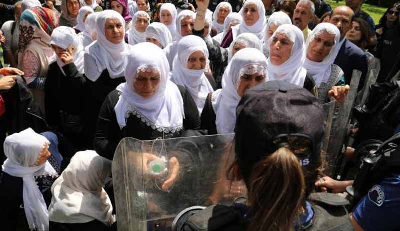 Diyarbakır’da beyaz tülbentli anneler, AKP Diyarbakır İl Başkanlığı önüne gelerek oturma eylemi başlattı. “Anneler barış istiyor” pankartıyla eylem yapan anneleri polis ablukaya aldı. AKP il binası önünde eylem yapan ve barış isteyen anneleri polis zorla alandan çıkardı.3 annenin gözaltına alındığı öğrenildi.