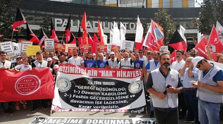 Bursa’nın Orhangazi ilçesinde kurulu olan Cargill fabrikasında Tekgıda-İş’te örgütlendikleri için işten atılan ve 11 gün önce mücadelelerini İstanbul Ataşehir’de bulunan Cargill Genel Müdürlüğü önüne taşıyan işçilerin direnişi bugün 500. gününde. Genel müdürlük önünde eş ve çocuklarının da katılımıyla eylem yapan işçilere, Sakarya’da Selüloz-İş Sendikası’nda örgütlendikleri için işten atılan ve 95 [Devamını Oku…]