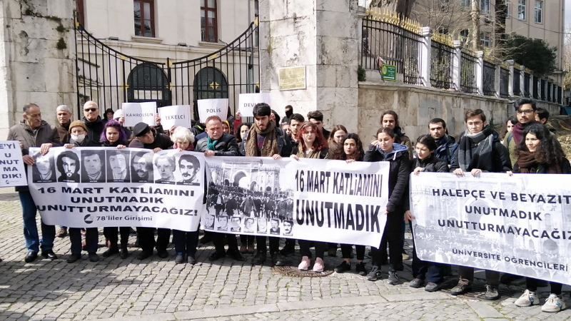 Üniversite öğrencileri ve 78’liler Girişimi, 16 Mart Beyazıt katliamının yıldönümü dolayısıyla İstanbul Üniversitesi Eczacılık Fakültesi önünde anma gerçekleştirdi. Saygı duruşu ile başlayan anmada ’78’liler Girişimi adına Hüseyin Soylu konuşma yaptı. Soylu, koronavirüs salgınına değinilerek katliamda yaşananları anlattı. Soylu, gerici diktatörlere karşı antiemperyalist bir mücadele verildiğini ve devletin katliamcı yönünü vurguladı. [Devamını Oku…]