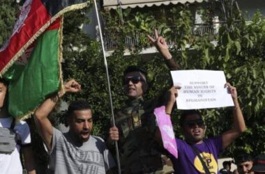 Yunanistan Atina’da Afganistanlı göçmenler Talibanı protesto eden eylem yaptı. Afganistanlı yaklaşık 300 göçmen Sintagma Meydanı’ndan AB ofislerinin bulunduğu bina ve ABD Büyükelçiliğine doğru yürüyüş yaptı. Taliban karşıtı sloganlar atılarak süren yürüyüş ABD Büyükelçiliği önünde bitirildi.