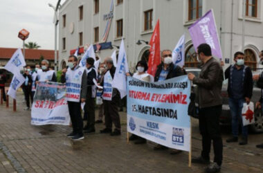 Sürgün ve baskılara karşı sürdürdükleri oturma eyleminden seslenen BTS İzmir Şube Eğitim ve Örgütlenme Sekreteri Ufuk Karslıoğlu, “AKP’ye kul, sermayeye köle olmayacağız” diyerek, mücadele mesajı verdi Birleşik Taşımacılık Çalışanları Sendikası (BTS) ile Sağlık ve Sosyal Hizmet Emekçileri Sendikası’nın (SES) sürgün ve baskılara karşı düzenlediği oturma eyleminin 15’inci haftasında da Alsancak [Devamını Oku…]