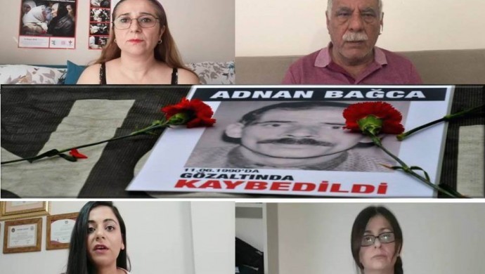 Cumartesi Anneleri 795. haftanın basın açıklamasında 11 Haziran 1990’da Siverek’te gözaltına alınarak kaybedilen Adnan Bağca’nın akıbeti soruldu, sorumluların yargılanması istendi. Açıklama koronavirüs salgınından kaynaklı bu hafta da sosyal medya hesapları üzerinden gerçekleştirildi. Açıklamada söz alan Adnan Bağça’nın kardeşi Mustafa Bağça yaptığı konuşmada, birçok makama başvursalar da herhangi bir sonuç alamadıklarını ve [Devamını Oku…]