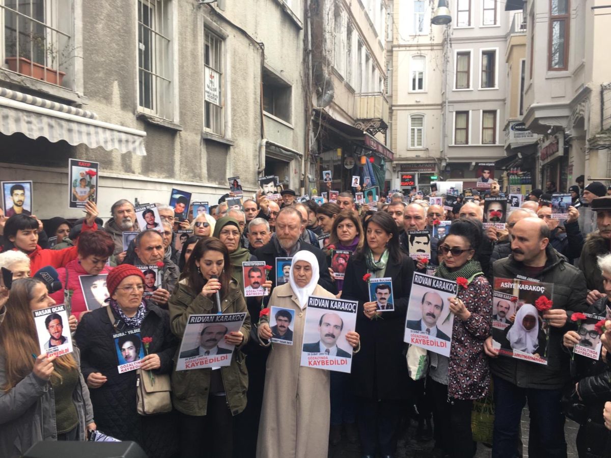 Cumartesi Anneleri, 777. buluşmalarında 20 Şubat 1995 tarihinde gözaltında katledilen Rıdvan Karakoç’un dosyasını ele aldı. Bu hafta da Galatasaray Meydanı’nda oturmaları polis tarafından engellenen kayıp yakınları İnsan Hakları Derneği (İHD) İstanbul Şubesi önünde basın açıklamalarını gerçekleştirdi. Eyleme Halkların Demokratik Kongresi (HDK) eş sözcüleri İdil Uğurlu ve Sedat Şenoğlu, Halkların Demokratik [Devamını Oku…]
