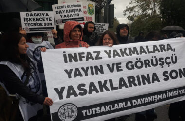 Tutsaklarla Dayanışma İnisiyatifi çağrısıyla Bakırköy Kadın Kapalı Hapishanesi önünde bir araya gelen aileler, infaz yakmaların ve görüşçü yasaklarının son bulması çağrısı yaptı Tutsaklarla Dayanışma İnisiyatifi (TDİ), tutsakların infazlarının yakılması ve görüş engellerine dair Bakırköy Kadın Kapalı Hapishanesi önünde açıklama yaptı. Marmara Tutuklu ve Hükümlü Ailelerle Yardımlaşma ve Dayanışma Derneği (MATUHAY-DER), [Devamını Oku…]