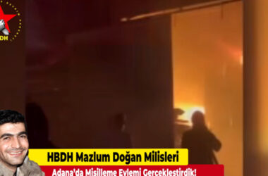 HBDH Mazlum Doğan Milisleri gerçekleştirdikleri eyleme dair yaptıkları açıklamada; ”Türk devletinin halklar arası savaş çıkarma planları birleşik devrimin örgütlü gücüyle boşa çıkacaktır.” dedi HBDH resmi internet sitesinden yayımlanan açıklamanın tam hali şöyle; HBDH Milislerinden Tecride ve İşgal Saldırılarına Karşı Adana’da Misilleme Eylemi 27 Ağustos gece saatlerinde Adana/Yüreğir’de bulunan, Mobilyacılar sitesinde, [Devamını Oku…]