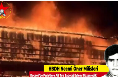HBDH Necmi Öner Milisleri, ”Eylemimizi AKP-MHP rejiminin son günlerde gerçekleştirdiği siyasi soykırım operasyonları ve zindanlarda süren tecrit ve ağır işkence saldırılarına karşı gerçekleştirdik” HBDH resmi internet sitesinden yayımlanan açıklamanın tam hali şöyle; HBDH Necmi Öner Milisleri; “Kocaeli’de Faşistlere Ait Tıra Sabotaj Eylemi Düzenledik!” 19 mayıs günü saat 23:00 sularında, TEM [Devamını Oku…]