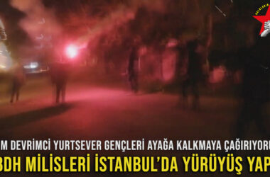 Halkların Birleşik Devrim Hareketi (HBDH) milisleri 27 Kasım akşamı İstanbul Arnavutköy’de meşalelerle yürüyüş gerçekleştirdi. Polisin saldırı girişimine milisler havai fişeklerle karşılık verdi. Eyleme ilişkin yapılan açıklamada, “Halkların Birleşik Devrim Hareketi olarak bileşenlerimizden PKK’nin kuruluş yıldönümü olan 27 Kasım’da sokağa çıkan güçlerimiz sömürgeciliğe karşı amansız bir savaş veren Kürt özgürlük hareketini [Devamını Oku…]