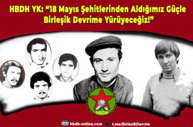 HBDH yaptığı açıklamada ”18 Mayıs’ı birleşik devrim mücadelemizin özsuyu haline getiren; İbrahim Kaypakkaya, Haki Karer ve Dörtler’in devrimci önderlik çizgisi ve öncü devrimciliğidir.” dedi HBDH resmi internet sitesinden yapılan açıklamanın tam hali şöyle; 18 Mayıs Şehitlerinden Aldığımız Güçle Birleşik Devrime Yürüyeceğiz! Mayıs ayı, dünya devrim tarihinde, sınıf mücadelesinde olduğu gibi [Devamını Oku…]