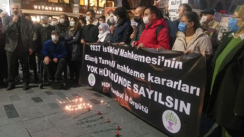 Halkların Demokratik Partisi (HDP) İstanbul İl Örgütü, Seyit Rıza ve arkadaşlarını idam edilişinin 83. yılında andı. Taksim Tünel Meydanı’nda düzenlenen anmada, “1937 İstiklal Mahkemesi’nin Elazığ Tunçeli mahkeme kararları yok hükmünde sayılsın” yazılı pankart açıldı, “Devlet resmi özür dilesin”, “Seyit Rıza ve arkadaşlarının mezar yerleri açıklansın” dövizleri ve Seyit Rıza ile [Devamını Oku…]