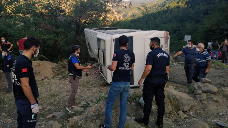 Artvin Murgul’da maden işçilerini taşıyan otobüs devrildi. Kazada otobüste bulunan Mehmet Kaynar (45) olay yerinde hayatını kaybetti, 15 kişi yaralandı. Yaralılar, olay yerine gelen ambulanslarla Murgul ve Borçka Devlet Hastanesine kaldırıldı. Olay yeri inceleme ekiplerinin incelemesinin ardından Kaynar’ın cenazesi, Borçka Devlet Hastanesi morguna kaldırıldı