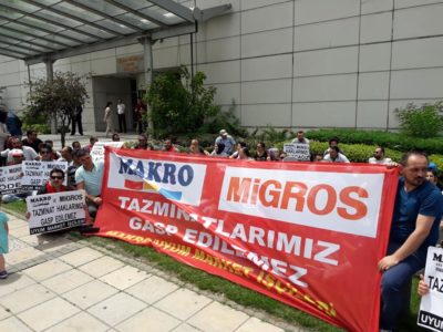 Kıdem tazminatlarının ödenmesi için Haziran ayından beri mücadele eden Uyum/Makro market işçilerinin direnişi zaferle sonuçlandı. Nakliyat İş Sendikası tarafından yapılan açıklamada günlerce direnen, mağazalar içerisinde eylemler yapan, gözaltına alınan ve darp edilen işçilerin kıdem tazminatlarının tamamının ödendiğini duyuruldu. Aynı zamanda Migros’ta yaptığı açıklamada “Bu anlaşmanın koşulu direnişçi işçilerin tazminatlarının ödenmesi. [Devamını Oku…]