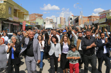 DEM Parti’nin kazandığı Urfa’nın Hilvan ilçesinde seçimlerin yenilenmesi kararı protesto edildi Halkların Eşitlik ve Demokrasi Partisi (DEM Parti) Hilvan İlçe Örgütü, AKP’nin itirazı sonucu seçimlerin yenilenmesi kararına karşı partinin seçim bürosu önünden Hilvan İlçe Seçim Kurulu önüne yürüyüş düzenleyerek, açıklama yaptı. Açıklamaya, Demokratik Bölgeler Partisi (DBP) Eş Genel Başkanı Çiğdem [Devamını Oku…]