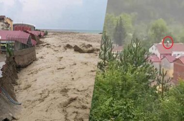 Sinop’un Ayancık ilçesine bağlı Yenikonak köyünde tek katlı evin yıkılıp, sel sularına kapıldığı ve yan binaların çatılarına çıkanların ellerinde beyaz örtü sallayarak, kurtarılmayı beklediği anlar, cep telefonu kamerasına yansıdı. Görüntüde, kayıt yapan kişinin ise “Ev yıkıldı, acil yardım bekliyoruz. Lütfen yardım edin, insanlar çatılarda” dediği duyuldu. Elektrik direğinin sel sularıyla [Devamını Oku…]