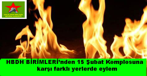 Halkların Birleşik Devrim Hareketi Milisleri tarafından yapılan açıklamada, 15 Şubat Komplosu’na karşı farklı yerlerde eylem düzenlendiği açıklandı. Yapılan açıklamada halklara yönelik baskı politikalarının artarak devam ettiği, Kürt halkı nezdinde tüm ezilenlerin direnişinin boğulmak istendiği belirtildi. Yapılan açıklamanın tam hali ise şöyle; Güçlerimiz tarafından Türkiye’nin pek çok noktasında eylem düzenledi. Güçlerimiz [Devamını Oku…]